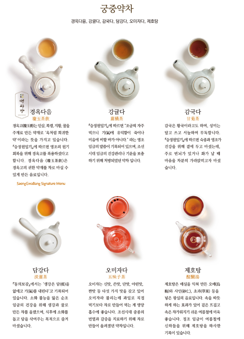 3. 궁중 약차 (공통 사항) 초두점증병 세트와 주약 세트 각각 약차는 공통 사항입니다.