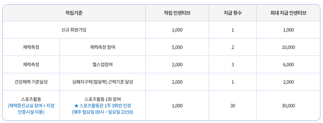 인증센터 방문하여 체력측정 참여시 5,000포인트 적립