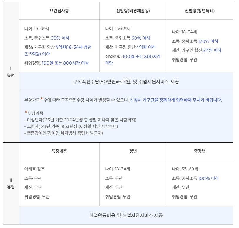 구직자 취업촉진 및 생활안정지원에 관한 법률을 근거하여 저소득 구직자 등 I유형 참여자에게 구직촉진수당