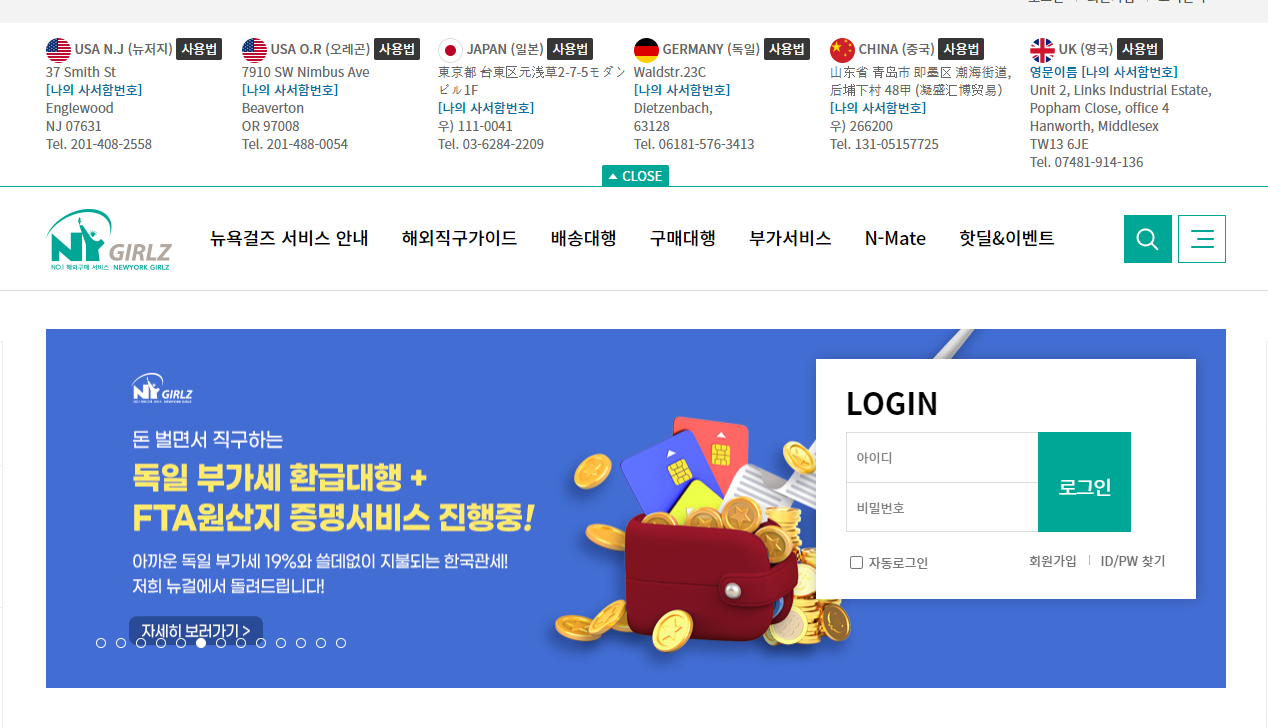 저는 뉴욕걸즈라는 배대지를 이용하는데요. 문제가 생길 때 응답도 빠르고 신속 정확한 처리를 해줌에 지속적으로 사용하고 있습니다.