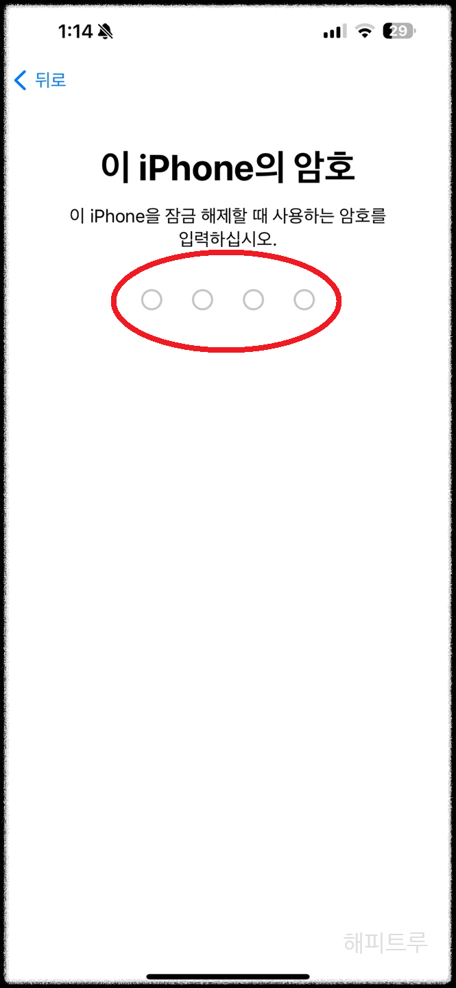 일곱째 : 비밀번호를 누르면 아이폰 초기화가 완료됩니다.