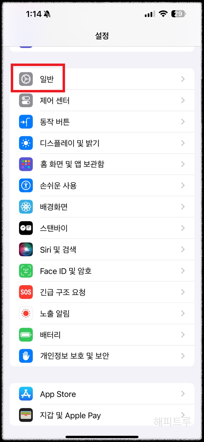 둘째 : 설정에 들어가신 후 스크롤을 내려 일반을 찾아 들어갑니다.