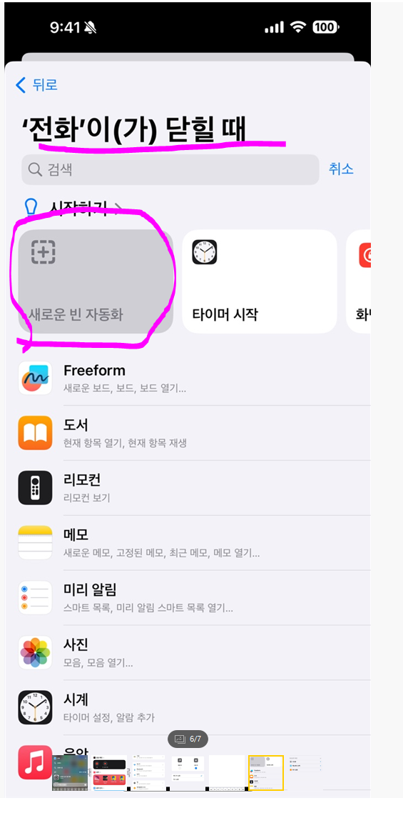 5. 전화가 닫힐 때가 설정되어 있는 것을 확인하시고 새로운 빈 자동화를 클릭해 줍니다.