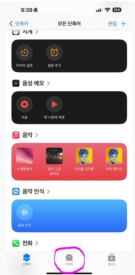 2. 가장 하단 자동화를 클릭해 줍니다.