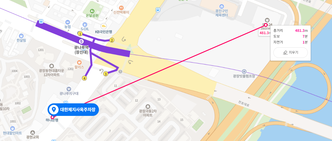 마을버스 : 광진 01번 청소년수련관 또는 광나루현대아파트