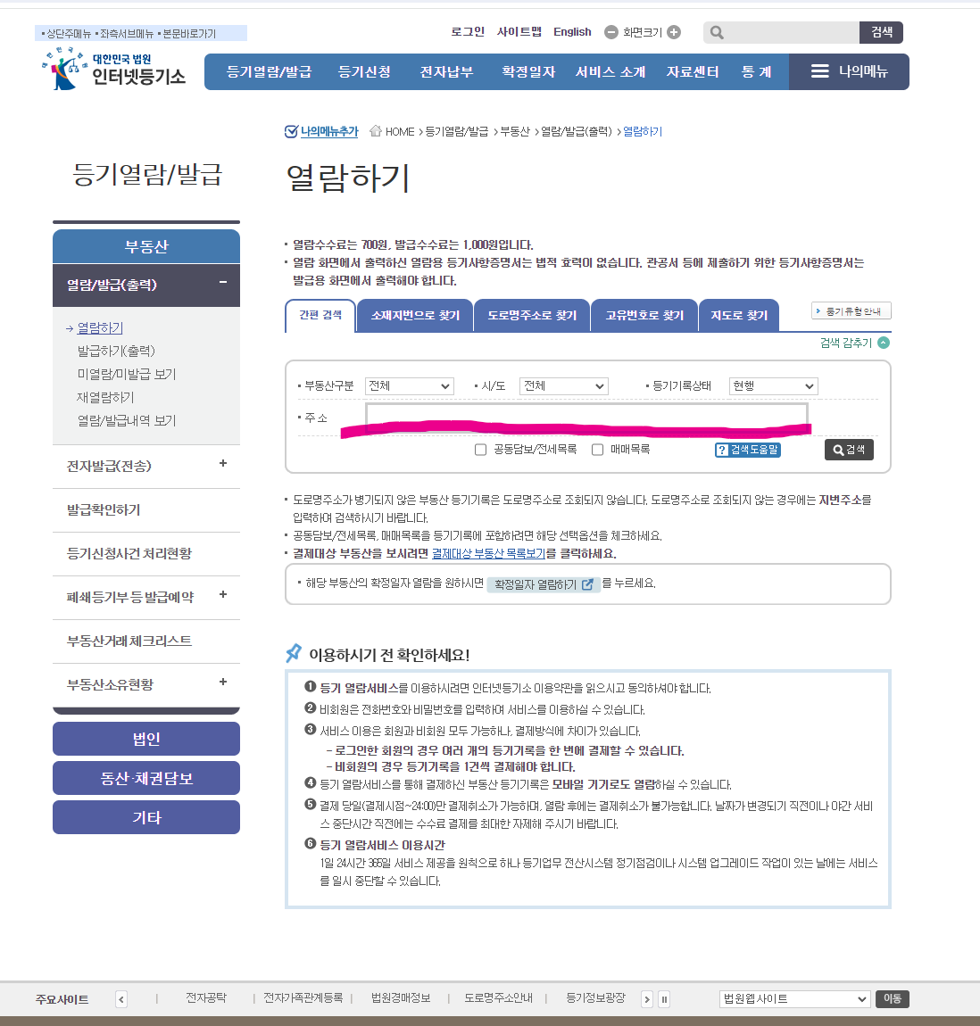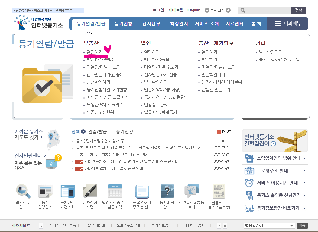 등기부등본 발급 방법