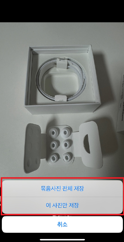묶어진 사진을 전체 저장하시려면 [묶음사진 전체 저장]을 눌러주세요.