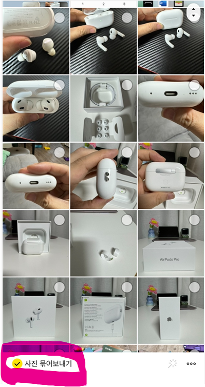 좌측 하단 [사진 묶어 보내기]를 눌러주세요.